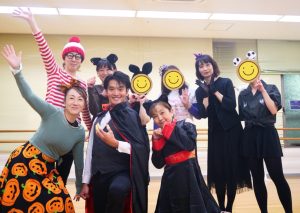 ハロウィン仮装レッスンは、仮装をするかどうかは個人にお任せし、仮装をする方は、それぞれ好きな衣装をご自身で用意していただきました。